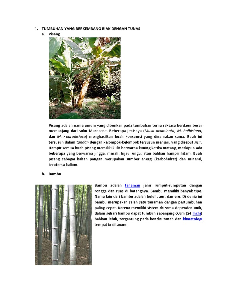 Peta buta dan nyata c. Cara berkembang biak vegetatif tumbuhan 1. Ini karena pohon pisang berkembang biak dengan cara bertunas sama seperti cara berkembang biak tebu yang sudah kita bahas pada artikel sebelumnya. Tunas biasanya berasal dari ketiak bagian tumbuhan di dalam tanah. Pohon pisang adalah contoh tumbuhan yang berkembang biak dengan tunas batang.